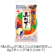 「ほんだし® かつおとこんぶのあわせだし」8gスティック7本入袋(AS-7)/14本入袋(AF-14)、小袋24袋入箱(AK-24)